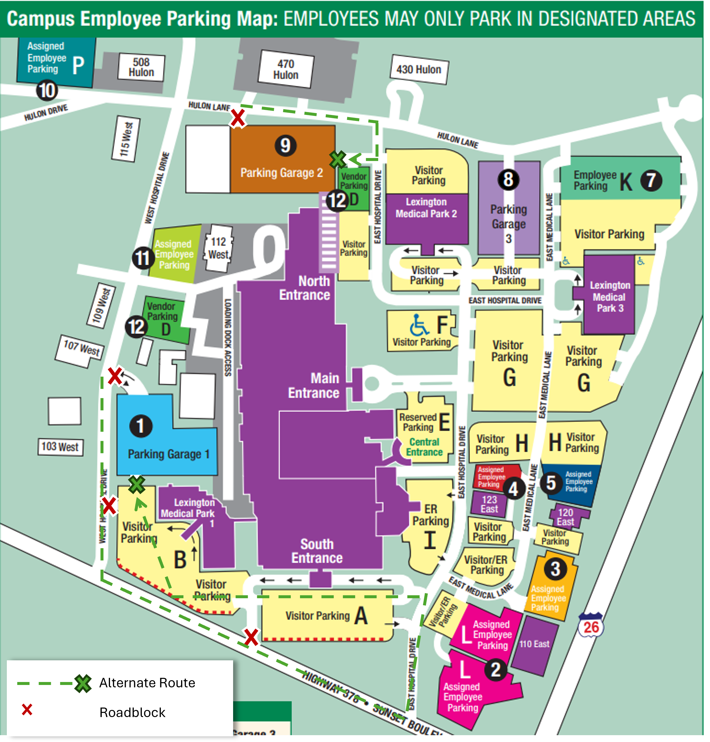 B Lot entrance from West Hospital Dr.